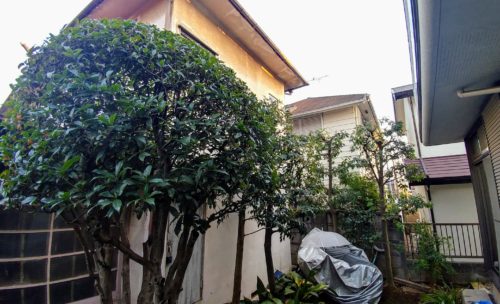- キンモクセイ: 香りの良い秋の花木。剪定は花の後の11月頃か、春先(3月)がおすすめです。今回は全体の形を整える程度の軽剪定を行いました。