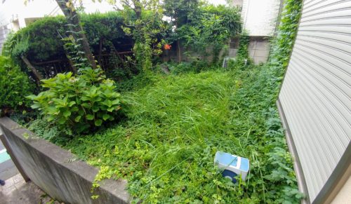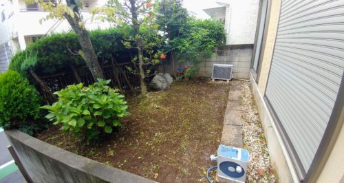 こちらのお庭では、地面全体に雑草がびっしりと広がっている状態でした。